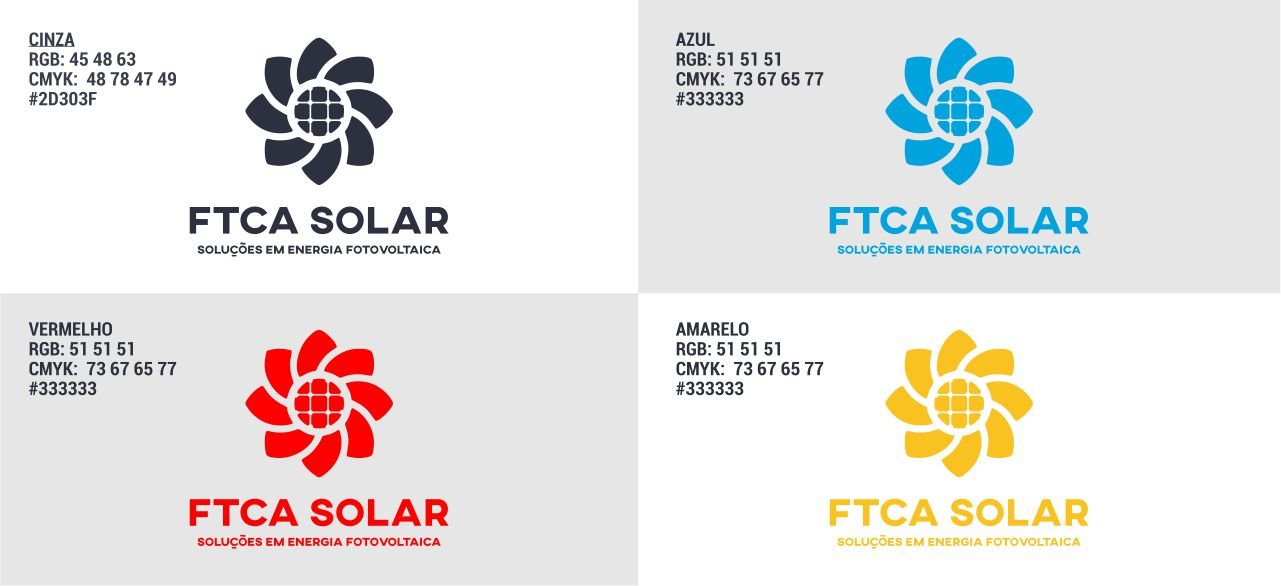 Para a FTCA Solar, criamos um Logotipo que simboliza a captação de energia solar (o sol/flor) e o movimento de solução/turbina. O design é claro e explícito, representando uma criação clara e esplitica, onde os elementos que compõe o logo deixa claro seu objetivo. A marca FTCA Solar, empresa de soluções em energia fotovoltaica em Sorocaba, foi criada a partir do conceito de seu principal elemento base, o sol.